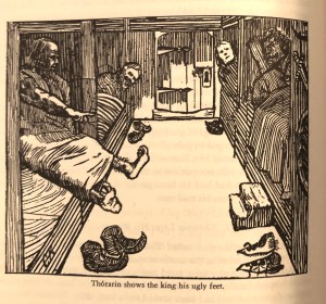 The king said to Thórarin, “I have been awake for a while, and I have seen a sight which seems to me worth seeing, and that is, a man’s foot so ugly that I don’t think there is an uglier one here in this town.” And he called on others to look at it and see whether they thought so too. And all who looked at it agreed that this was the case.